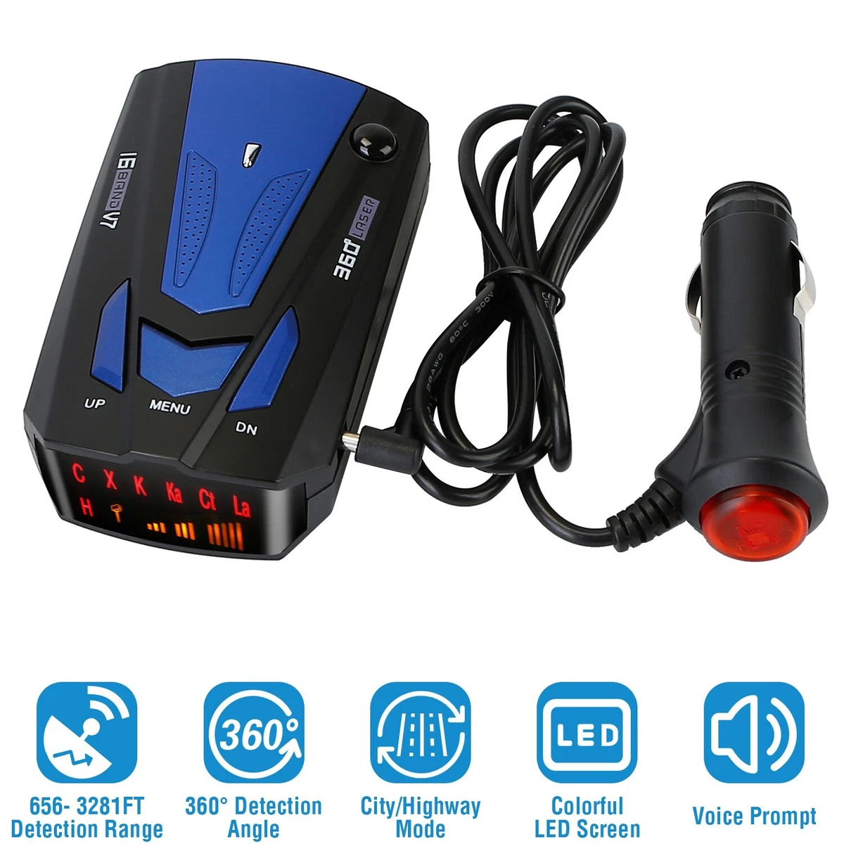 360 Car 16 Band V7 Gps Speed Safety Radar Detector Voice Alert Laser Led Display Ebay